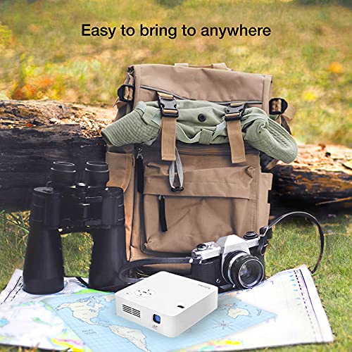 EZCast Beam J2 projector | Compacte en lichtgewicht oplaadbare DLP-projector met hoge helderheid voor reizen, kamperen, slaapkamer, wifi, batterijvoeding, 1080P-ondersteuning, statief en draagtas