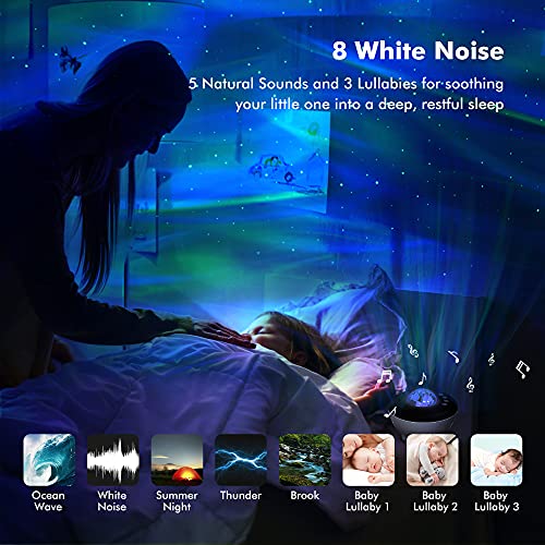 Star Sky-projector, KIWIHOME Galaxy-projector met witte ruis, Bluetooth-nachtlampje, upgrade Aurora-projector met APP-bediening, Galaxy-plafonddecoratie voor baby-kind-volwassene (black-white)