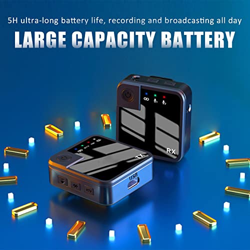 ⇝Ingebouwde 400 mAh-batterij: ingebouwde 400 mAh oplaadbare lithiumbatterij, onze draadloze lavalier-microfoon kan 1,5 uur opladen en ongeveer 6 uur werken.