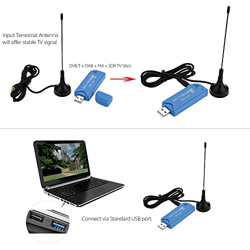 Specification: Festnight Mini Digitale USB 2.0 TV Stick DVB-T + DAB + FM RTL2832U + R820T2 Ondersteuning SDR Tuner Ontvanger met Antenne en afstandsbediening Installatie CD Drive