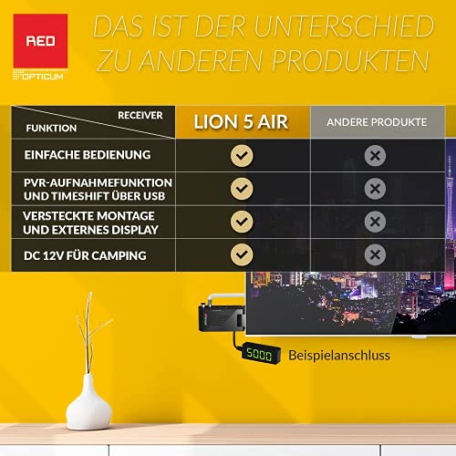 RED OPTICUM AX Lion 5 AIR DVB-T2 H.265 receiver met opnamefunctie, externe infraroodsensor met LED-display, HDMI/SCART, USB 2.0 I 12V voeding, ideaal voor kamperen