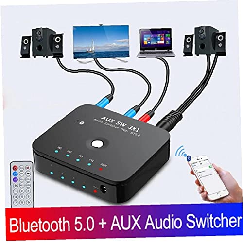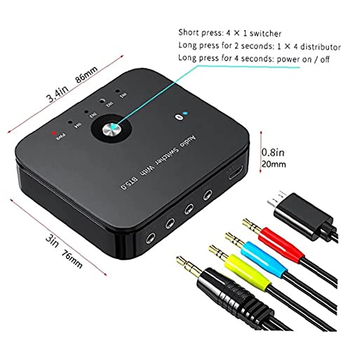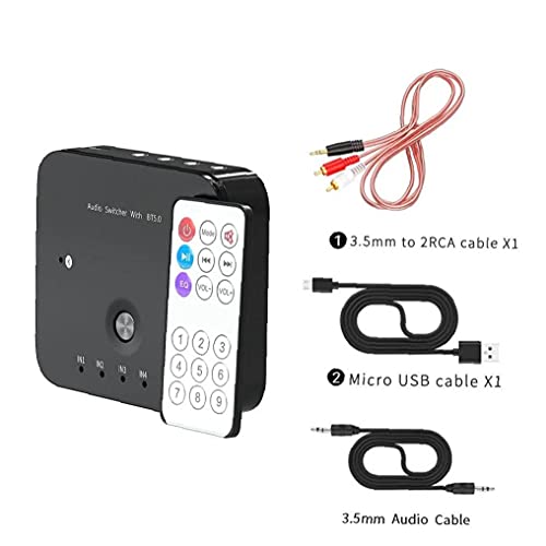 Specification: Draadloze audio-ontvanger, 3 in 1 uit audio-adapter 3.5mm stereo aux-switcher met afstandsbediening Verbeterd ontvangen signaal