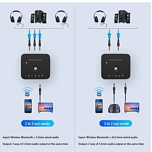 Draadloze audio-ontvanger, 3 in 1 uit audio-adapter 3.5mm stereo aux-switcher met afstandsbediening Verbeterd ontvangen signaal