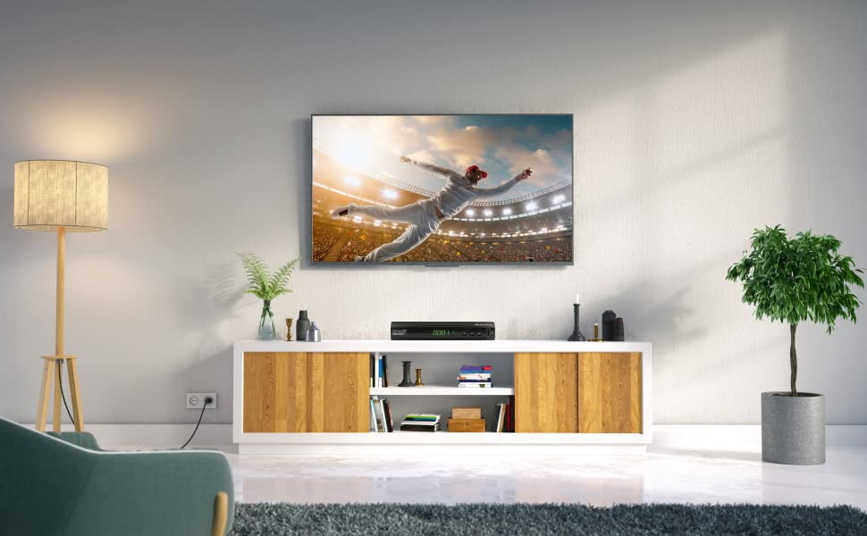 Met de DVB-C-ontvanger kun je heel eenvoudig ook blijven genieten van het complete assortiment vrij ontvangen tv- en radiokanalen, zonder dat je een nieuw tv-apparaat hoeft te kopen. Gewoon de ontvanger aansluiten en klaar is Kees.